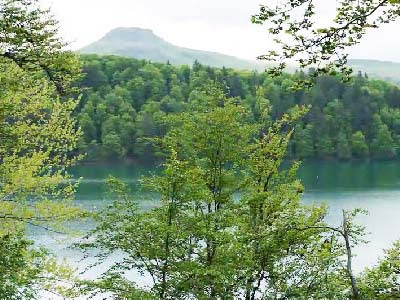 La chaise du diable. Le lac pavin dans lequel sest jete le seigneur roupoutou ou le diable qui selon une autre version sortait du lac en creant des tourbillons.